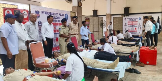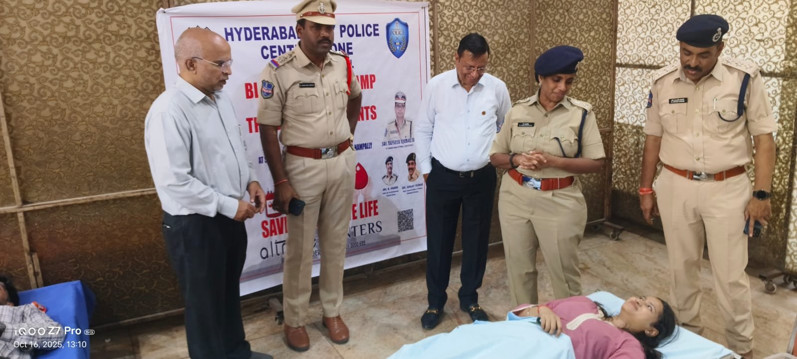 Hyderabad’Oct 16 (PMI) On the occasion of Police Flag Day, the Saifabad Division of the Central Zone Police organized a blood donation camp at Shah Function Plaza to support patients suffering from Thalassemia, a hereditary blood disorder that requires regular transfusions for survival.