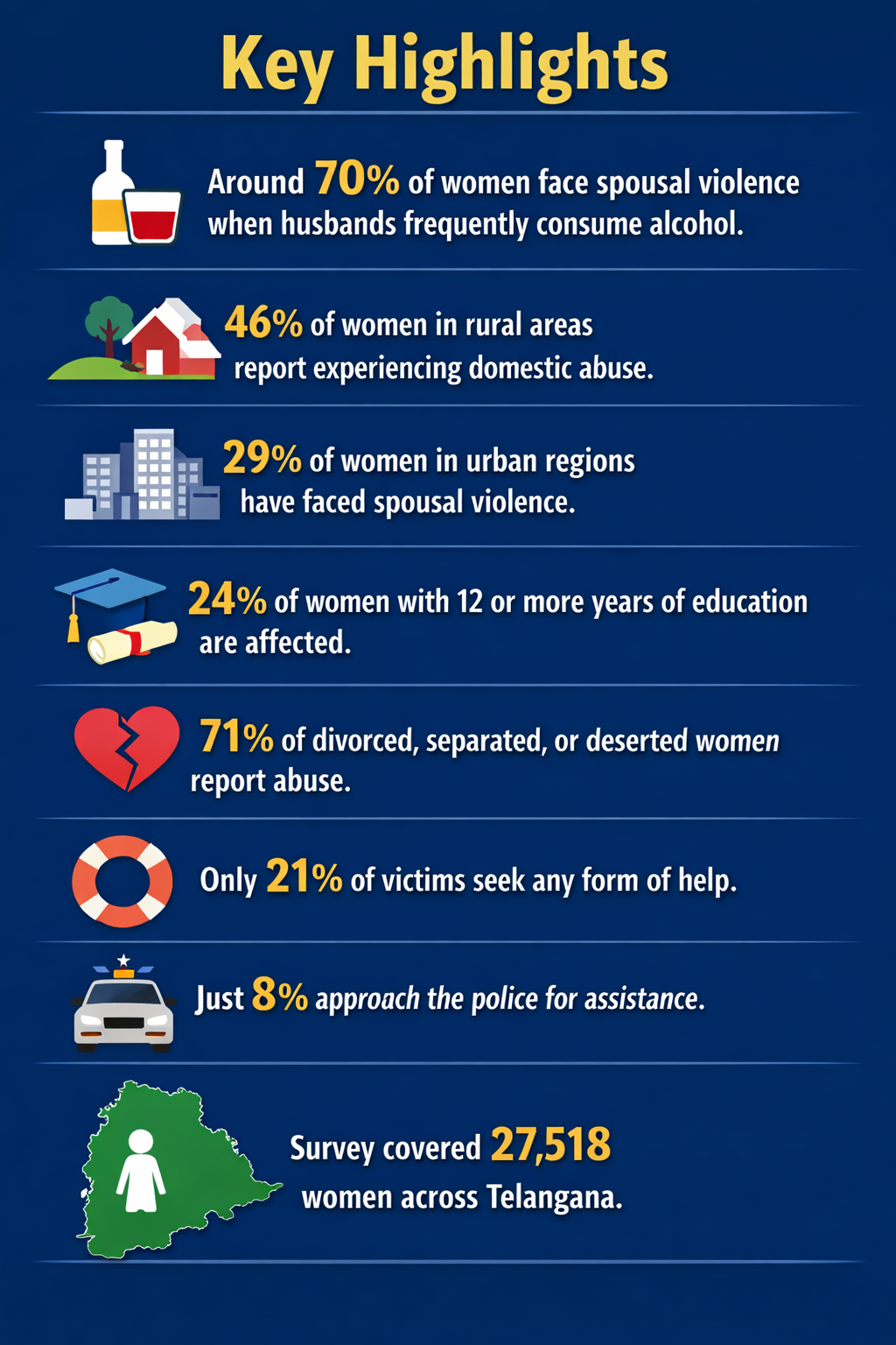 Alarmingly, the survey highlights a social acceptance of domestic violence. About 84 percent of women believe that a husband may be justified in hitting his wife under certain circumstances, such as neglecting household duties or disrespecting in-laws. This mindset discourages victims from seeking help, resulting in 71 percent of affected women never speaking out about their abuse.