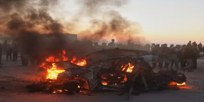 Videos posted online in the aftermath showed the vehicle engulfed in flames.