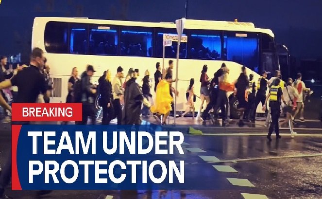 Hundreds of supporters surrounded the Iranian Lionesses’ coach as it left the stadium on the Gold Coast on Sunday evening, with chants of “save our girls”.
