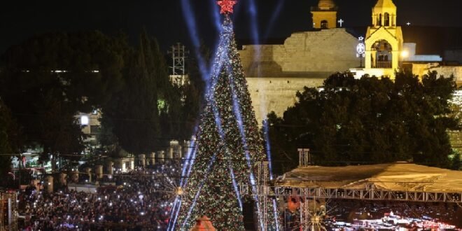WEST BANK: For two years during the Gaza war, all public celebrations for Christmas were cancelled in Bethlehem in the occupied West Bank where Christians believe Jesus was born but after the recent ceasefire, the holy city decided that this year the festivities would return as symbolized by the lighting of its traditional, giant Christmas tree in front of the historic Nativity Church.