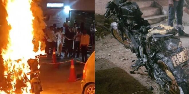 Hyderabad, March 6 (PMI) Panic briefly spread in the Asif Nagar area of Hyderabad on Friday after a moving two-wheeler suddenly caught fire. The incident occurred in front of the Asif Nagar Police Station, where a motorcycle traveling on the road suddenly began emitting smoke and, within moments, burst into flames.