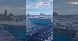 07-11-2025 LISBON: Four people have been detained after Portuguese authorities intercepted a narco-sub carrying more than 1.7 tons of cocaine in the mid-Atlantic. The semi-submersible vessel was bound for the Iberian Peninsula and was seized in recent days, according to officials. Footage shows the police and navy surrounding the vessel …