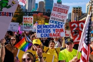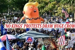 20-10-2025 NEW YORK: Huge crowds have taken part in “No Kings” protests against President Donald Trump’s policies in cities across the US, including New York, Washington DC, Chicago, Miami and Los Angeles. Thousands packed New York City’s iconic Times Square and streets all around, with people holding signs with slogans …