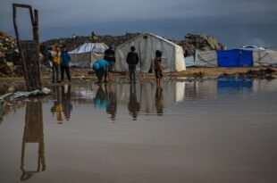 13-12-2025 GAZA STRIP/ DEIR-EL-BALAH: After a night of relentless rain, Arafat al-Ghandour and his wife, Nour, finally exhaled in relief as the morning sun emerged, if only briefly, over the soaked displacement camp. The couple, parents of five, live in a worn tent riddled with holes. They spent the night …