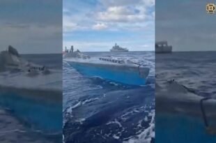 07-11-2025 LISBON: Four people have been detained after Portuguese authorities intercepted a narco-sub carrying more than 1.7 tons of cocaine in the mid-Atlantic. The semi-submersible vessel was bound for the Iberian Peninsula and was seized in recent days, according to officials. Footage shows the police and navy surrounding the vessel …