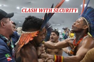 14-11-2025 BELEM, BRAZIL: Dozens of Indigenous protesters forced their way into the COP30 climate summit venue on Tuesday and clashed with security guards at the entrance to demand climate action and forest protection. Shouting angrily, protesters demanded access to the UN compound where thousands of delegates from countries around the …
