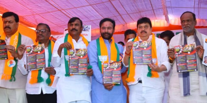 Hyderabad, Dec.7 (Shoukat-PMI NEWS): Union Minister G. Kishan Reddy on Sunday alleged that both Congress and the BRS parties were corrupt parties in the state. He dared Chief Minister Revanth Reddy for a debate on the implementation of the promises made by him. Reddy participated in the Mahadharna organized by the BJP at Indira Park Dharna Chowk.