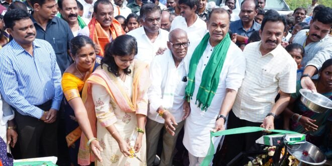As part of his whirlwind tour in Thipparthy mandal, the Minister inaugurated several development works on Friday, including IKP paddy procurement centres at Ramalingalagudem, Anthayyagudem, Thipparthy market yard, and Mamidala, a new Gram Panchayat building at Kankanallapally, and a new ration shop at Marrigudem where he distributed fine rice to beneficiaries. He also flagged off lorries transporting paddy from the Thipparthy centre.