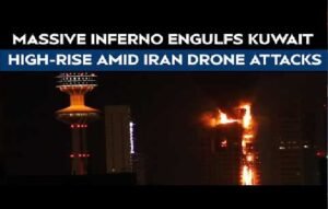 The Kuwait army says it has been dealing “with a wave of hostile drones”, including an attack on fuel tankers at the Kuwait International Airport. Elsewhere, a huge fire engulfed a tower.