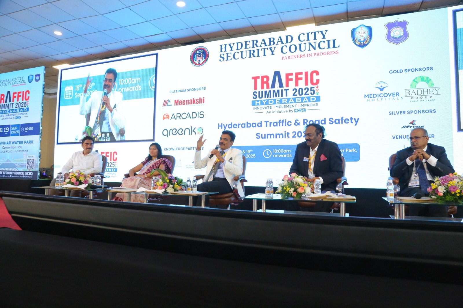 Hyderabad, Sept 19, 2025 ( Shoukat-PMI)– The Hyderabad City Security Council (HCSC) and Hyderabad City Police jointly organized the Traffic Summit – 2025 at Jal Vihar, Necklace Road. The two-day summit brought together policymakers, industry leaders, traffic experts, legislators, academicians, and civil society to discuss challenges and solutions related to urban transportation and road safety.