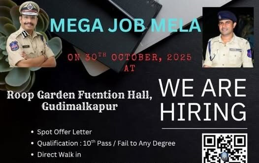 Hyderabad, October 29(Najaf Ali Shoukat-PMI) As part of the ongoing Police Commemoration Week (October 21–31, 2025), the South West Zone of Hyderabad City Police, in collaboration with Deccan Blasters, is organizing a Mega Job Mela on Thursday, October 30, 2025, from 8:00 a.m. to 1:00 p.m. at Roop Garden Function Hall, near Pillar No. 63, Rethibowli Ring Road, Mehdipatnam, Hyderabad.