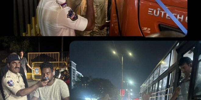 Hyderabad, October 5, 2025(PMI) In a concerted effort to enhance road safety and curb the increasing menace of drunk driving, the Hyderabad Traffic Police conducted surprise checks across 23 key locations in the city on the night of October 4, 2025.