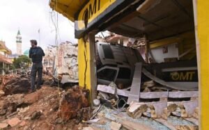 In the southern suburbs of Beirut, a stronghold of Hezbollah, buildings lay in mounds of smoking rubble and twisted metal, media footage showed.