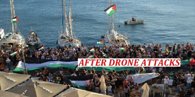 Activists reported a wave of attacks on Wednesday night by Israeli drones and aircraft targeting vessels in what flotilla organizers described as “an alarmingly dangerous escalation”.