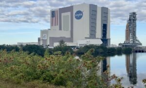 The Artemis II crew, NASA’s Reid Wiseman, Victor Glover and Christina Koch and Canadian astronaut Jeremy Hansen were at the Kennedy Space Center watching the rocket as it was moved.