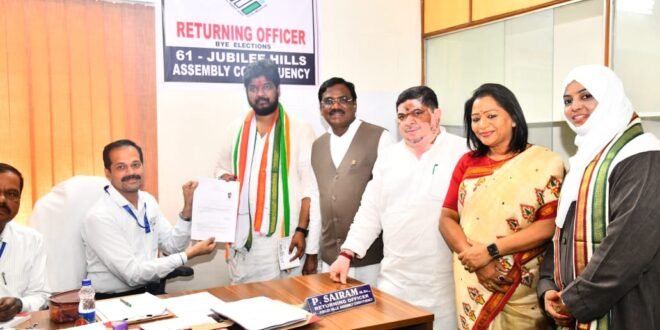 Hyderabad, Oct.17 (PMI): Naveen Yadav, the Congress party’s candidate for the Jubilee Hills by-election, submitted his nomination papers at the Sheikhpet MRO office in Hyderabad on Friday.