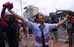 The demonstrators gathered in Maitighar, a neighborhood in Kathmandu. It includes a busy road intersection, featuring the Maitighar Mandala monument one of the city’s most iconic landmarks.
