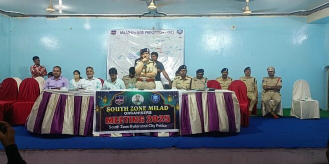 Hyderabad, Sept. 12 (Najaf Ali Shoukat-PMI) The South Zone Police conducted a coordination meeting on Friday at Sana Garden, Charminar PS limits, to review preparations for the upcoming Milad-un-Nabi celebrations.