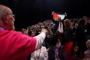 In response to the protest, Reeves told delegates, “We understand your cause and we are recognizing a Palestinian state but “we are now a party in government, not a party of protest,” Reeves added, receiving a standing ovation from those in the audience but in a statement from the Palestinian Youth Movement (PYM), which planned the disruption with London for a Free Palestine, the groups called on the ruling Labour Party to impose a “full two-way arms embargo on Israel”.