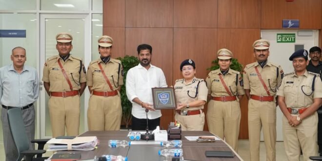 Hyderabad ‘Nov 28 (PMI News) Hon’ble Chief Minister A. Revanth Reddy met several probationary IPS officers today during their familiarisation visit. Officers Ayesha Fatima, Manisha Nehra, Mandhare Sohan Sunil, and Rahul Kant called on the Chief Minister and interacted with him as part of their training schedule.