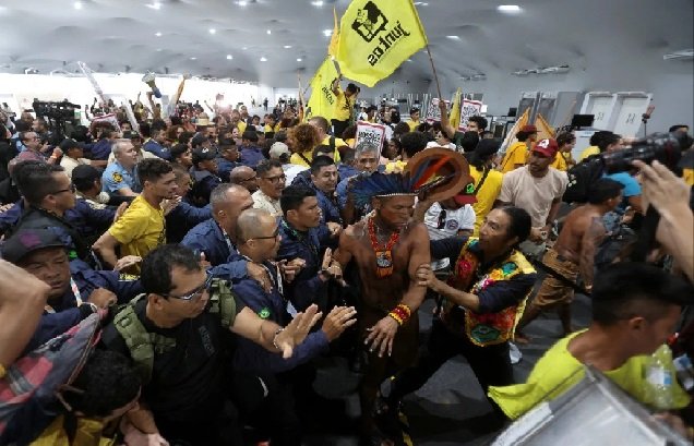 Shouting angrily, protesters demanded access to the UN compound where thousands of delegates from countries around the world are attending this year’s UN climate summit in the Amazon city of Belem, Brazil.