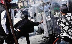 In Mexico City, a small group of hooded protesters tore down fences around the National Palace where President Claudia Sheinbaum lives, prompting a clash with riot police who deployed tear gas, according to media reports.