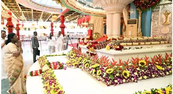 According to the President, Sathya Sai Baba encouraged his followers to align spirituality with public welfare. She expressed satisfaction that his devotees across the world continue to serve the underprivileged, noting that his message of selfless love through selfless service inspires the Sri Sathya Sai organisation to actively volunteer for societal welfare.