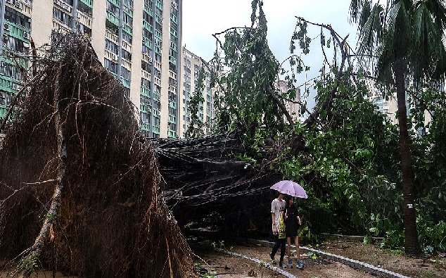 Ahead of making landfall, 90 people were injured in Hong Kong as the storm skirted its coastline, the hospital authority said.