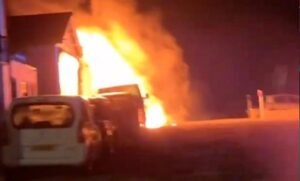 According to a report, which quoted a volunteer mosque manager, two people were inside the building when two people in balaclavas tried to force the mosque door open and poured petrol onto the steps, setting the building alight.