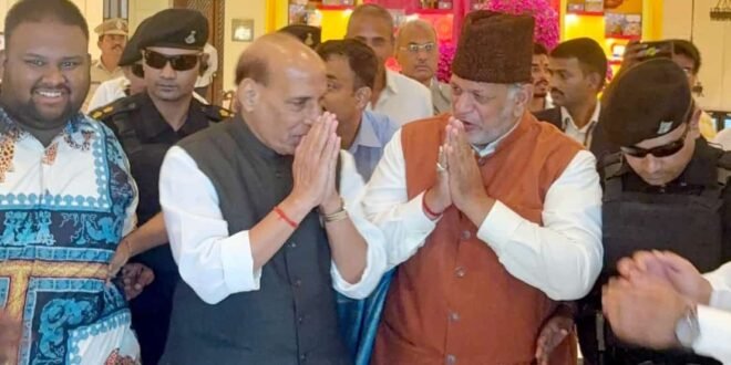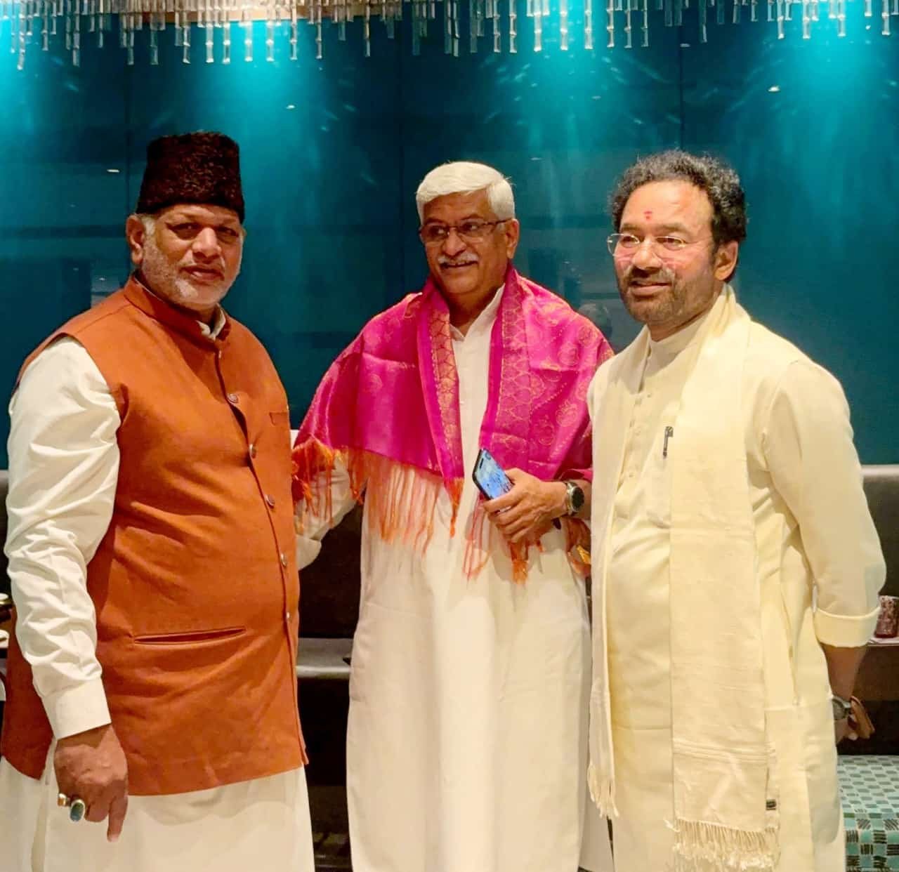 Hyderabad, Oct 04 (PMI) BJP Former State Spokesperson Mir Firasath Ali Baqri welcomed & Facilitated Hon’ble Union Minister for Defence Rajnath Singh & Hon’ble Union Minister for Tourism & Culture, Gajendra Singh Shekhawat, to Telangana ahead of today’s visit for Hyderabad Liberation Day Celebrations, where he will grace the occasion as Chief Guest. On this occasion, Hon’ble Union Minister for Coal and Mines, Govt of Bharat. G Krishan Reddy & BJP State President N Ramchander Rao are also seen(PMI)