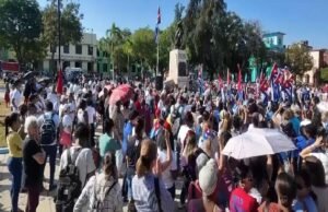 Top officials in Cuba’s communist government led the demonstration, including Deputy Prime Minister Ines Maria Chapman and Deputy Foreign Minister Josefina Vidal.